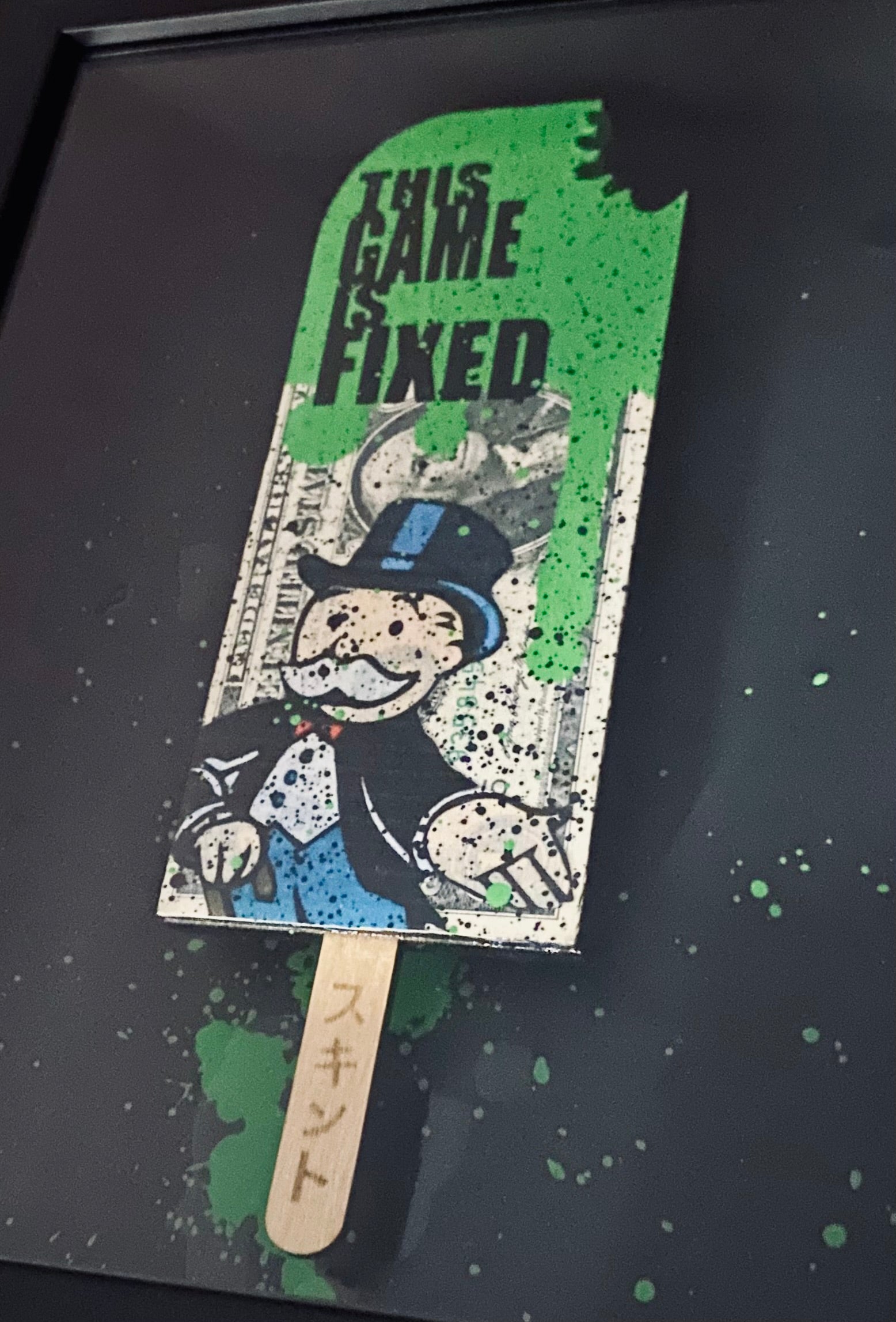 3D - Mr. Monopoly Green Ice Lolly. Real Dollar Bill. Mixed Media Original Artwork.